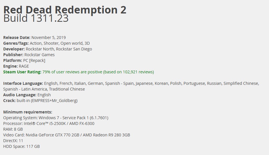 Red Dead Redemption 2 (Build 1311.23, MULTi13) PCmagnet:?xt=urn:btih:BB87CFC779921142E61B9768234C14964C0E2FC3&dn=Red+Dead+Redemption+2+%28Build+1311.23%2C+MULTi13%29+%5BFitGirl+Repack%5D&tr=udp%3A%2F%2F46.148.18.250%3A2710&tr=udp%3A%2F%2Fopentor.org%3A2710&tr=udp%3A%2F%2Ftracker.coppersurfer.tk%3A6969%2Fannounce&tr=udp%3A%2F%2Ftracker.opentrackr.org%3A1337%2Fannounce&tr=http%3A%2F%2Ftracker.dler.org%3A6969%2Fannounce&tr=udp%3A%2F%2Ftracker.leechers-paradise.org%3A6969%2Fannounce&tr=udp%3A%2F%2F9.rarbg.me%3A2730%2Fannounce&tr=udp%3A%2F%2F9.rarbg.to%3A2770%2Fannounce&tr=udp%3A%2F%2Ftracker.pirateparty.gr%3A6969%2Fannounce&tr=http%3A%2F%2Fretracker.local%2Fannounce&tr=http%3A%2F%2Fretracker.ip.ncnet.ru%2Fannounce&tr=udp%3A%2F%2Fexodus.desync.com%3A6969%2Fannounce&tr=udp%3A%2F%2Fipv4.tracker.harry.lu%3A80%2Fannounce&tr=udp%3A%2F%2Fopen.stealth.si%3A80%2Fannounce&tr=udp%3A%2F%2Ftracker.zer0day.to%3A1337%2Fannounce&tr=udp%3A%2F%2Ftracker.leechers-paradise.org%3A6969%2Fannounce&tr=udp%3A%2F%2Fcoppersurfer.tk%3A6969%2Fannounce