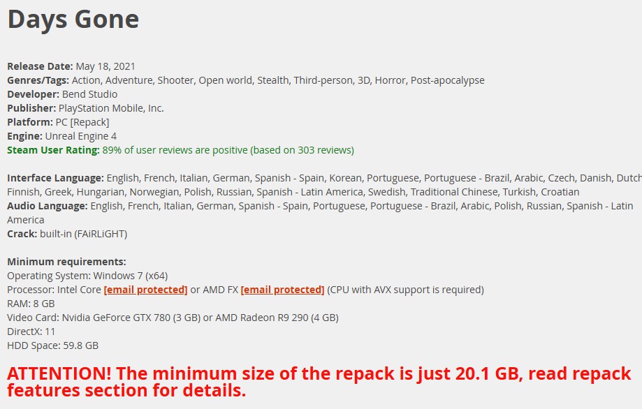 Days Gone (MULTi23) PCmagnet:?xt=urn:btih:50E0E662E8E91221708FCCF077389D0917981C9E&dn=Days+Gone+%28MULTi23%29+%5BFitGirl+Repack%2C+Selective+Download+-+from+20.1+GB%5D&tr=udp%3A%2F%2F46.148.18.250%3A2710&tr=udp%3A%2F%2Fopentor.org%3A2710&tr=udp%3A%2F%2Ftracker.coppersurfer.tk%3A6969%2Fannounce&tr=udp%3A%2F%2Ftracker.opentrackr.org%3A1337%2Fannounce&tr=http%3A%2F%2Ftracker.dler.org%3A6969%2Fannounce&tr=udp%3A%2F%2Ftracker.leechers-paradise.org%3A6969%2Fannounce&tr=udp%3A%2F%2F9.rarbg.me%3A2730%2Fannounce&tr=udp%3A%2F%2F9.rarbg.to%3A2770%2Fannounce&tr=udp%3A%2F%2Ftracker.pirateparty.gr%3A6969%2Fannounce&tr=http%3A%2F%2Fretracker.local%2Fannounce&tr=http%3A%2F%2Fretracker.ip.ncnet.ru%2Fannounce&tr=udp%3A%2F%2Fexodus.desync.com%3A6969%2Fannounce&tr=udp%3A%2F%2Fipv4.tracker.harry.lu%3A80%2Fannounce&tr=udp%3A%2F%2Fopen.stealth.si%3A80%2Fannounce&tr=udp%3A%2F%2Ftracker.zer0day.to%3A1337%2Fannounce&tr=udp%3A%2F%2Ftracker.leechers-paradise.org%3A6969%2Fannounce&tr=udp%3A%2F%2Fcoppersurfer.tk%3A6969%2Fannounce