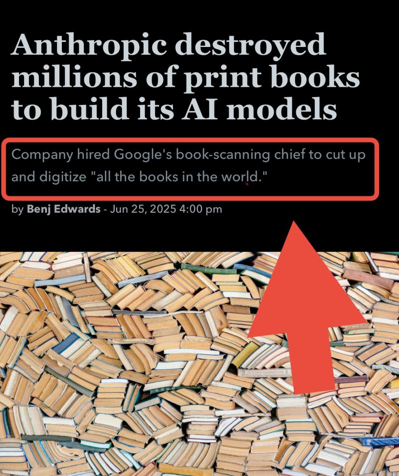 >https://arstechnica.com/ai/2025/06/anthropic-destroyed-millions-of-print-books-to-build-its-ai-models/
