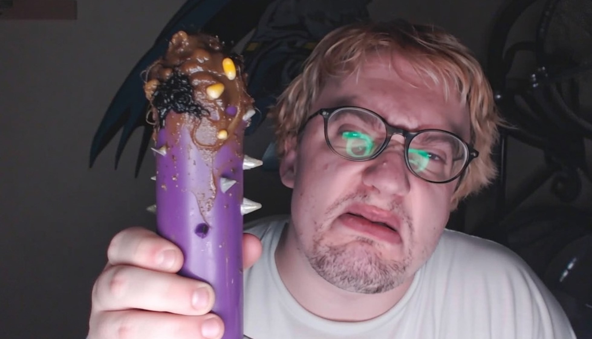 it's alleged that sam plays around his own intestines poking them out with long phallic object of purple coloration. Interesting allegations, does big purple show up in the epstein files?=