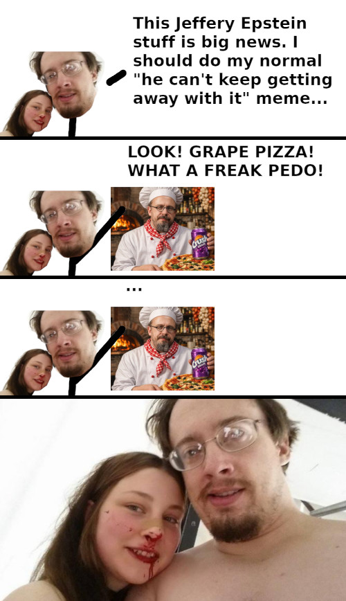 >>1393779Why don't you want to do anything about it? You have a phenomenal opportunity to connect Sam Hyde to Epstein via his connection to Peter Thiel, but instead you are wasting your time generating silly pictures and posting on /t/. If you truly want Sam Hyde to face justice, you know what you have to do. If you just like having someone to bitch about and are protecting him so that you can keep bitching, then just keep doing what you are doing.