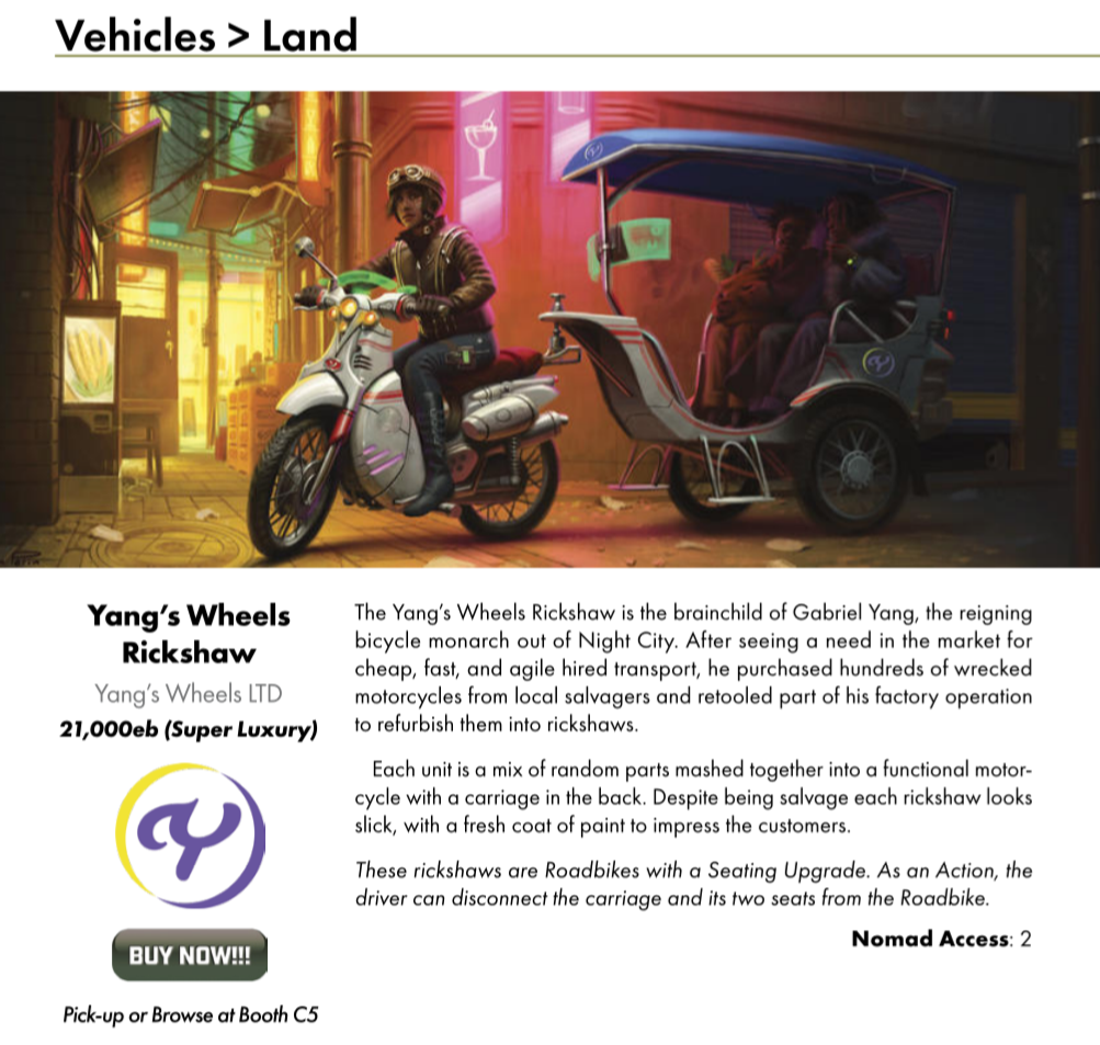 continuing with my list of "things which are more expensive than several versions of military power armour"Why would you do anything in night city but steal cars?but seriously - what the fuck were they thinking with vehicle prices? there isn't even a credit system in game, and these are worse than IRL vehicles, even new ones