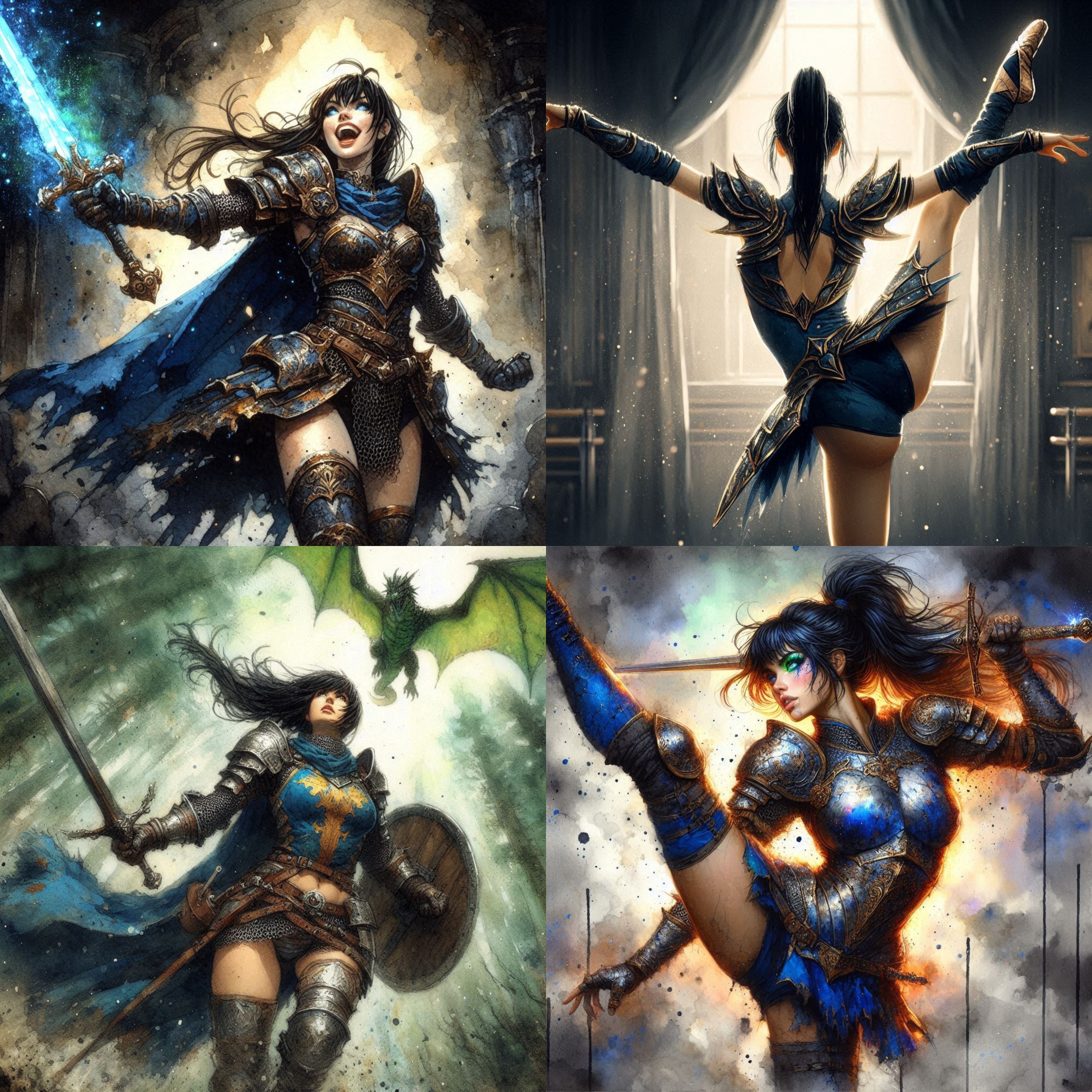 >>97374283One thing I have noticed with Bing in particular is that, unlike other models, it seems to give equal weight to every facet of your description. For example, you'll notice that pretty much all of the pics in my collage are relatively close-up; this is by design, because when describing Auré's eyes, if the image was further away, it would spend so much effort trying to include that detail (when it would be hard to see from a distance) that the rest of the image would suffer as a result. In those cases, I would either leave out that detail (her eyes don't matter if the view is from behind or the side, etc), or have her eyes be closed, and the average image quality would improve significantly.In short, look for the details that might be working against you, gauge whether or not they're important, and excise or modify them.Also, being succinct helps. The way some people craft prompts seem like short stories. Each of these prompts below will get you the same basic result, but save you a lot of prompt space (which, with Bing, matters):> she has long, luscious flowing black hair, tied in a ponytail, with short bangs>black hair bangs ponytail