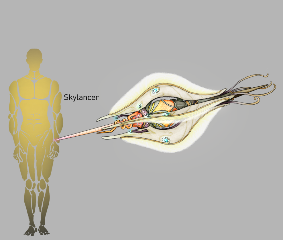 >>97376006Additional Baryxian drone, one designed with the specific purpose of being flying long range fire support devices. They use their suspension vane wings and miniaturized biojets to manouver trough air and their fiber beamers to pick off targets at distance, before repositioning themselves.