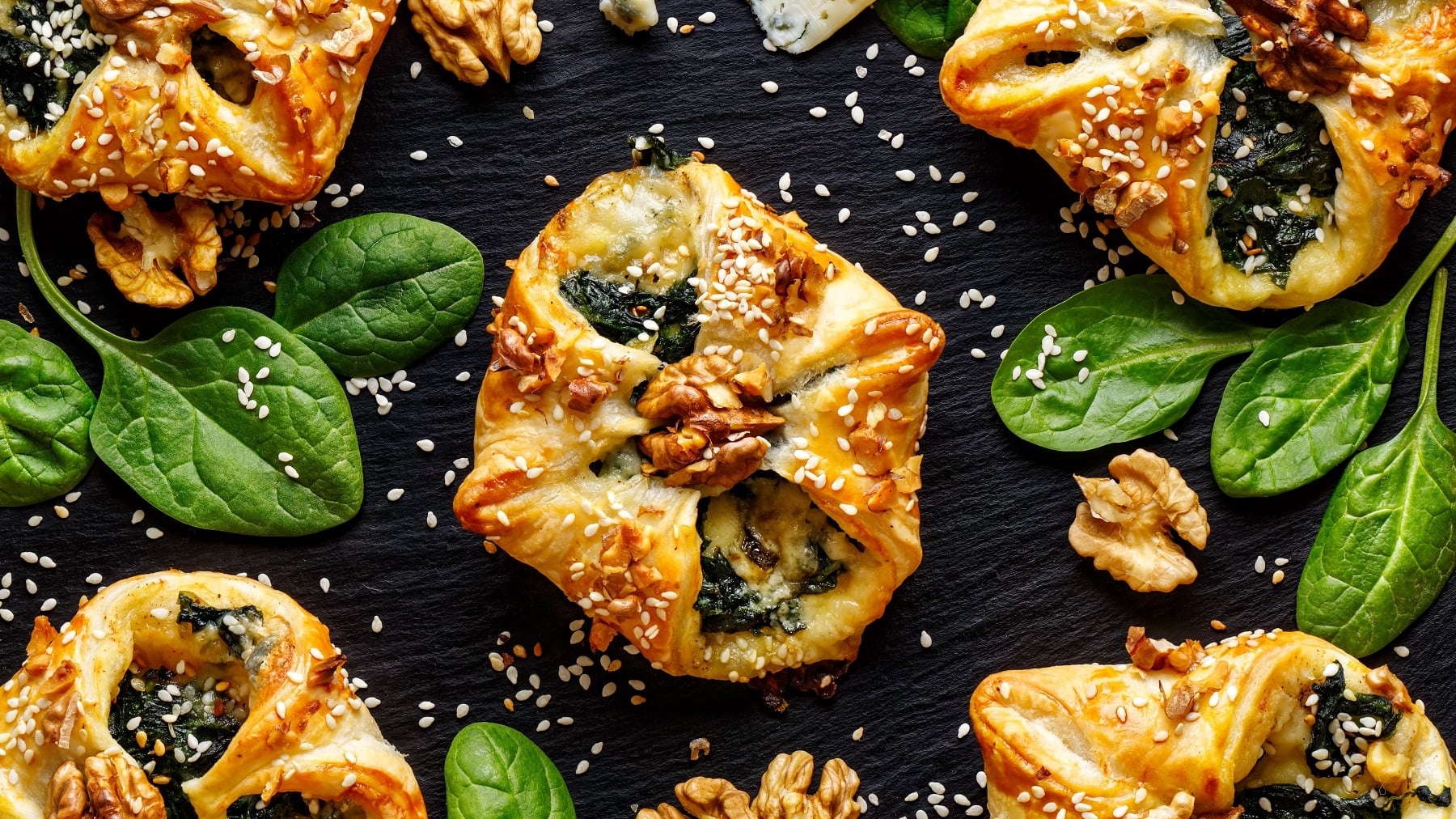 Puff pastries with spinach, creme fraiche and roasted almond flakes.pic semi related