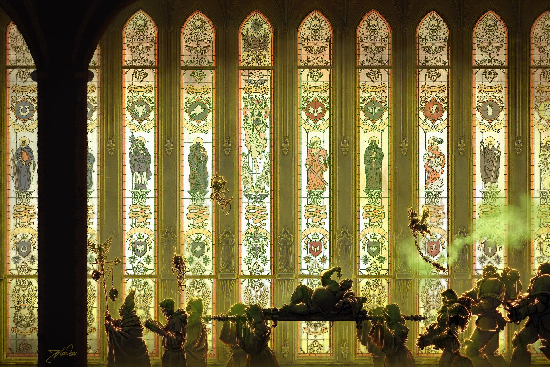 >>97179803>>97180114In the Bill King story all DA are native american themed and Plainsworld was their sole recruitment planet for 10,000 years (the implication being since the chapter's founding). This is all Bill King OC, Rick Priestly's original pitch for the Dark Angels in the Rogue Trader rulebook is of a monastic knight order, and when they revisited the Dark Angels at the tail end of Rogue Trader (after Bill had left the studio) they reverted to the original background for them and Plainsworld became just one of many recruitment planets.Personally I find the knightly DA with deep dark secrets boring as shit and all myguys are from Plainsworld.