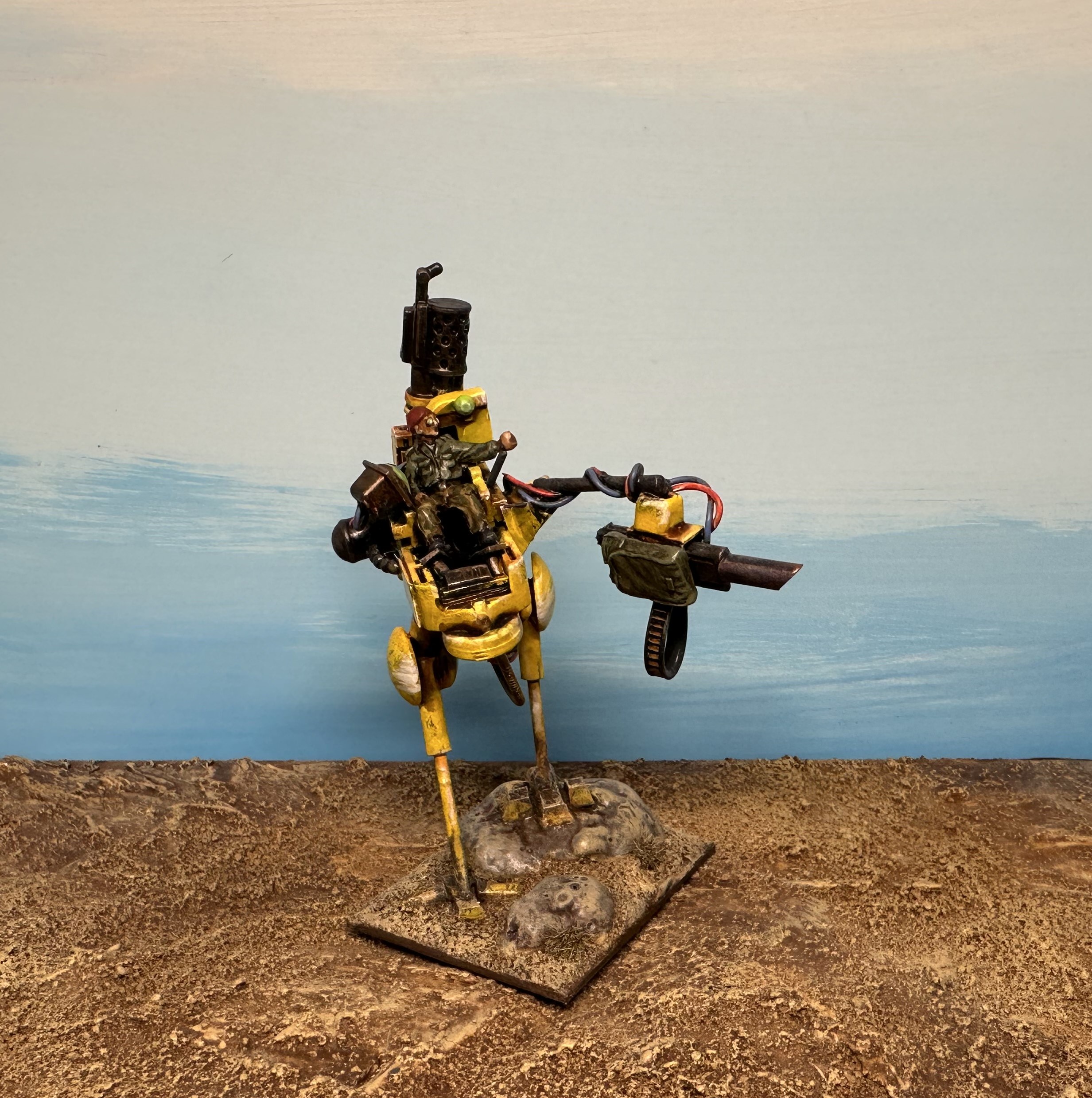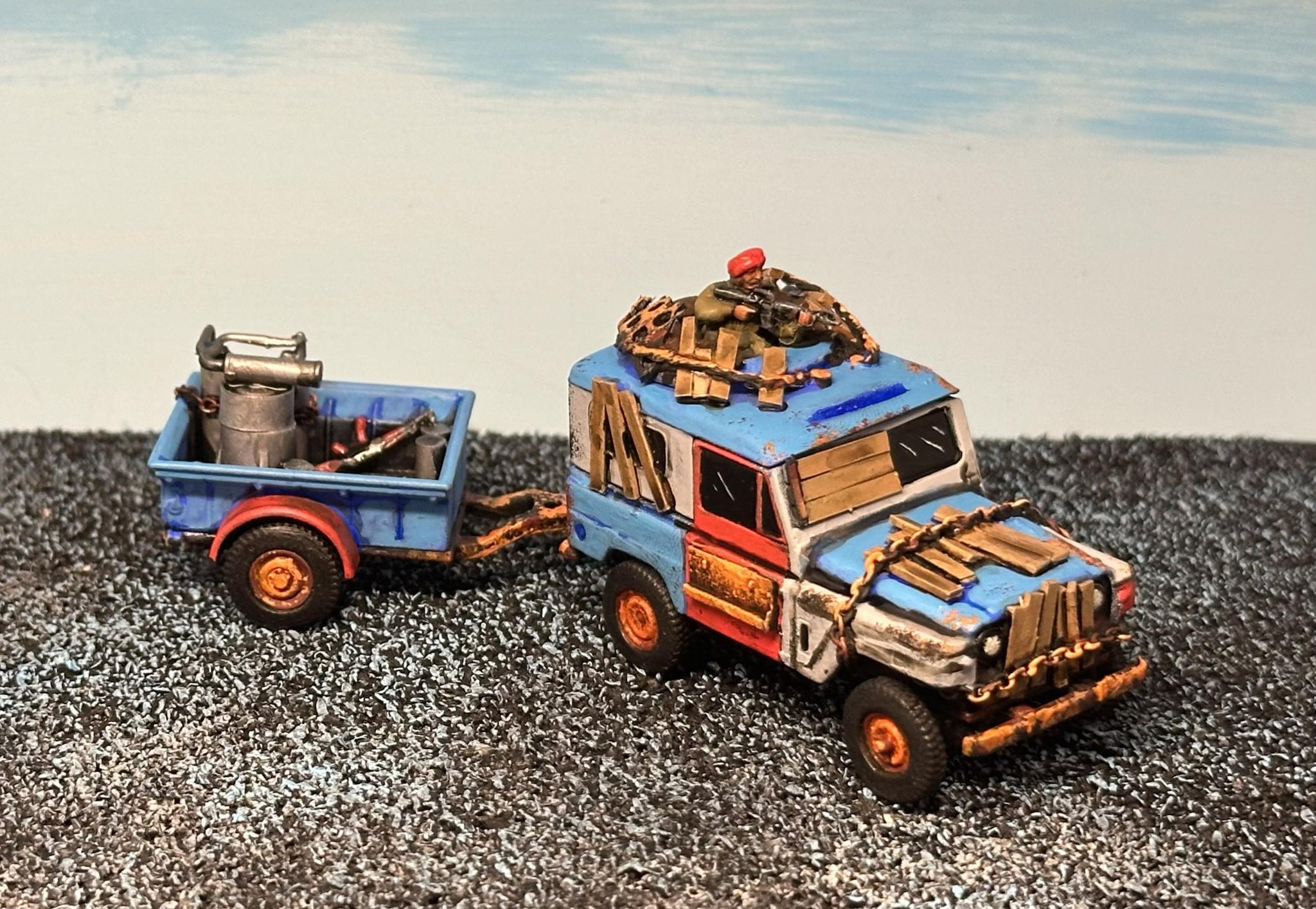 >>97253875Most of my bits are 40K castoffs, window-screen patches for mesh, and chopped up sprues, backpacks and so-forth. >>97250047 specifically was a tank model I bought from a hobby store and just...half-built before slapping the car on top of it. So the main gun and the top gun are from the kit, as well as the treads and some armor plating and of course the pilots.