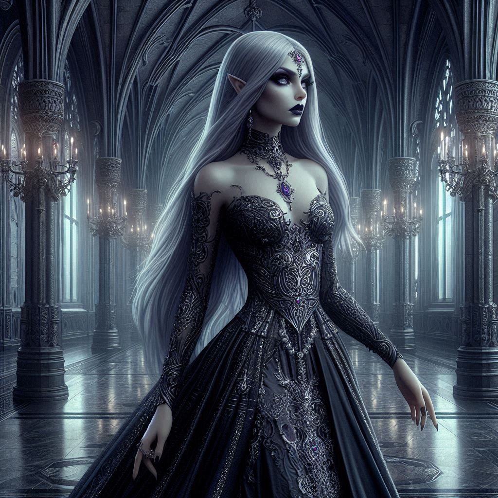 Maybe there's no altar, but still pretty dark. Unfortunately Bing ignored all instructions regarding skin color, because she was supposed to be onyx black. Even darker grey colours got either ignored, or dogged.