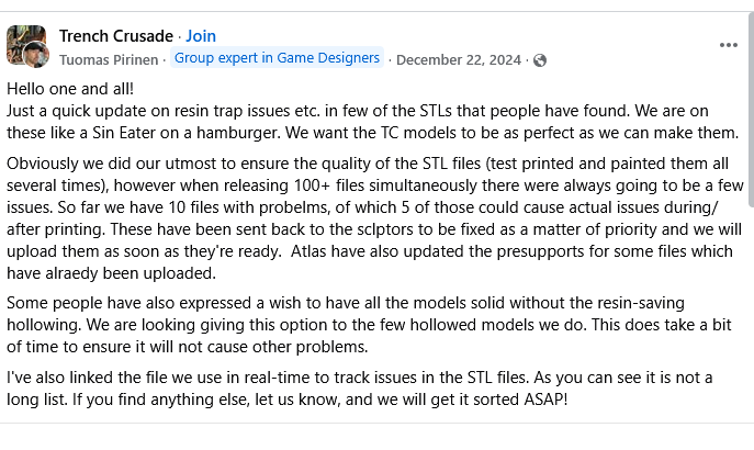 >>97335374>Sane people just move on from these thingsConsoomers do, gold fish do.I like to keep an eye on what the companies i support do. I try not to buy from say CGL because they will embezzle money, they will will fuck around. RIP iron winds.I don't go around exploding over it but it is something i keep in the back of my head.Bad supports and resin traps are a bad sign but we all make mistakes, if they haven't fixed them with the resources they have fully then that's more of a problem because it shows their prioritizes.>you can play with other minisand i do and i like that this is in their system.my issue is determining if it's a pattern of behaviour.I don't NEED offical minis but i wouldn't mind some, they're quite good, that's why we supported the project, a cool fucking universe and look.It makes me second guess picking up ones i like from FF in resin. I'm going to watch the plastic rollouts and see how those turn out before buying in.particularly because i'm still mad at prodos games and their partner is (rebranded) prodos.I'm not going to be the first one through the door.Comment too long. Click here to view the full text.
