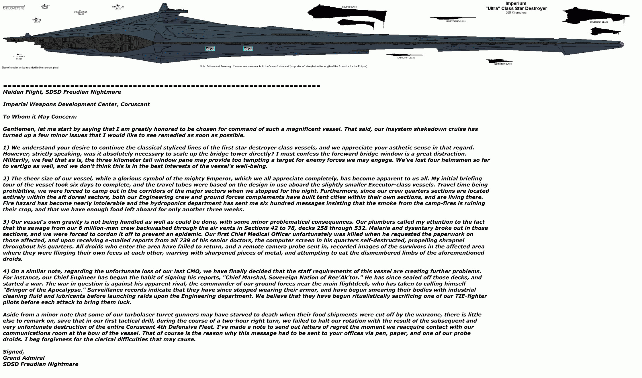 >>97231599Yeah, no wonder the New Repuiblic shat durasteel bricks and called in [Rogues/Wraiths/Kyle Katarn, delete whichever is not on call this months] when some megalomaniac remnant warlord managed to seize and operate a Executor-class SSD. That is one huge ship.