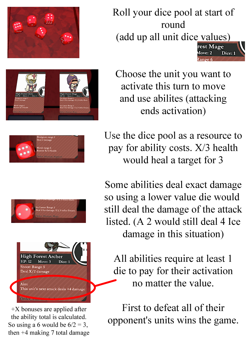 >>97169667This, it's 6v6 unit alternating grid game that has players roll dice at the start of the round and choose the values to use when they activate their unit that turn. It's heavily inspired by a game called dobbel dungeon as well as a few old d6 tabletop systems I played a long time ago.Gen 1 is done and will probably be adjusted a bit before I make it public, some units need V4 art but if anyone has any suggestions for units for gen 2 onwards I'd greatly appreciate it!