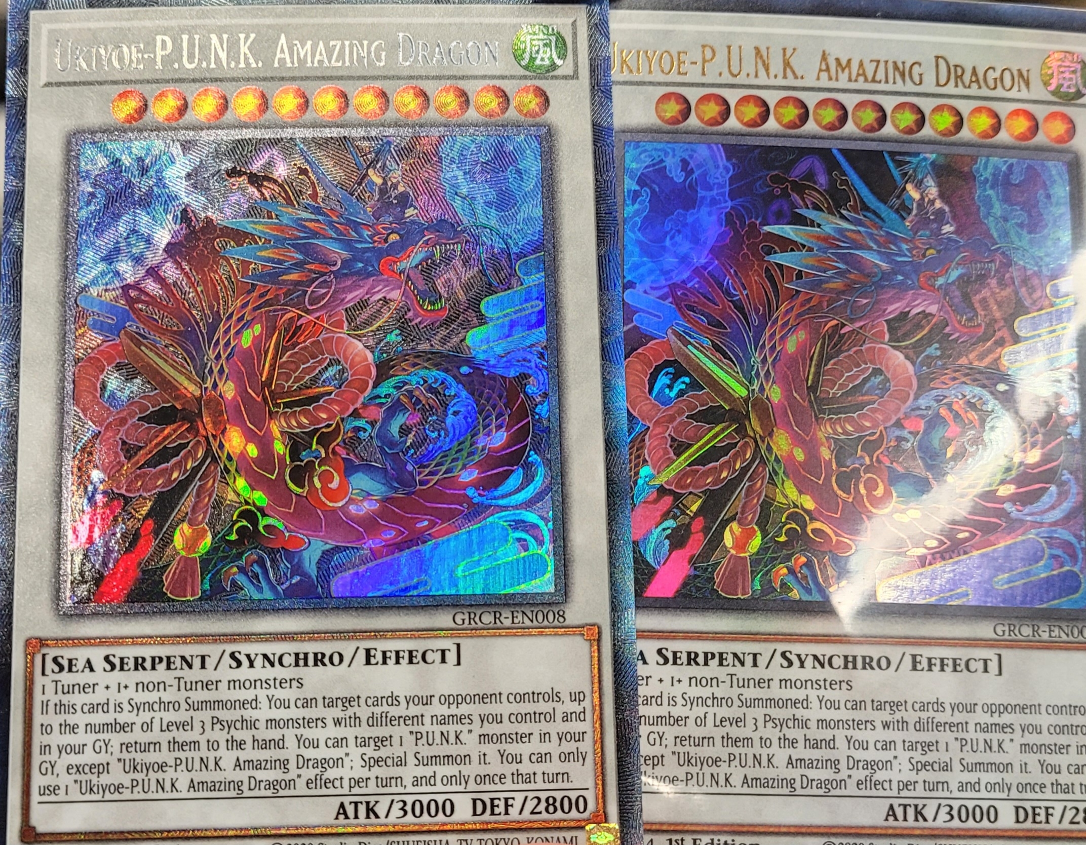 >>97361757UR (ultra rare). The only other rarity it is in the set is CR (collector rare). Here's an example of a CR vs UR.The colored foil ridge art+extras and rainbow foil (looks white/silver here) name for CR and the UR is gold name and rainbow foil art.>rarity like mtgThat idea kind of breaks down in usefulness once you have cards that appear in multiple rarites in the same set. Such as this example where there's a UR and CR, or the OCG's entire product structure where cards very often come in multiple rarities. So it's not going to do much to help.While the idea sounds reasonable at first but the games are structured too different and it doesn't translate.