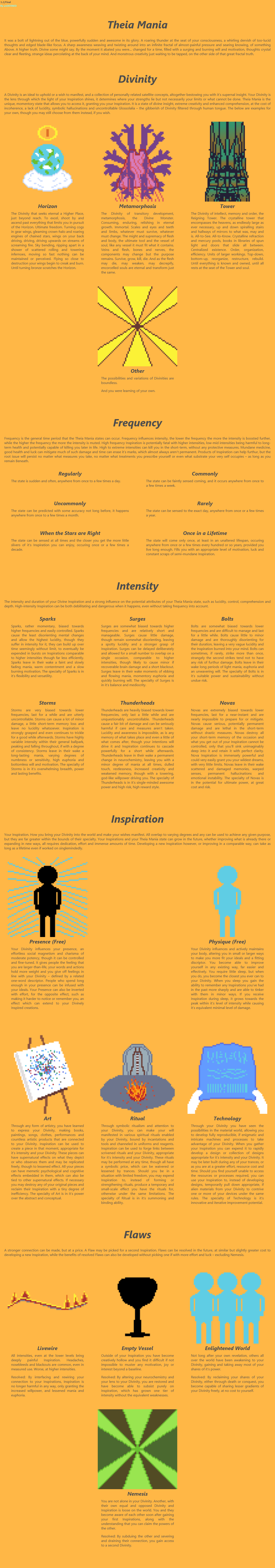 >>97361977Mage: the Ascension/awakening is the system. It's a little bit difficult to say really, every mage filters their magic through a paradigm, a way they see magic and its place in reality as a whole. If you get too flippant with magic around people who haven't been awoken then reality will try to assert itself and backlash on you.The closest is probably magic masquerading as sci-fi, as my mage's paradigm is based around engineering and science (arc weapons instead of casting 'lightning Bolt's). It also helps he's incredibly intelligent, allowing some of his gadgets to actually mechanically function without magic.Filtering magic through the lens of technology and nearish future sci-fi concepts let's him get away with more than most, as the consensus of reality has been exposed to enough of those concepts to believe they could exist. I have a much easier time getting around paradox backlash than say, our art streamer mage who paints things into reality or our daoist who uses 'chi' manipulation and various talismans.