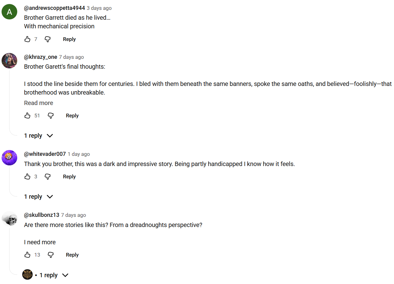 Is anyone else far more interested in hearing more of Katsuhiro's story than whatever Dorn and Guilliman are doing during the scouring? I want more lore focused on the everyday mortals of the imperium.