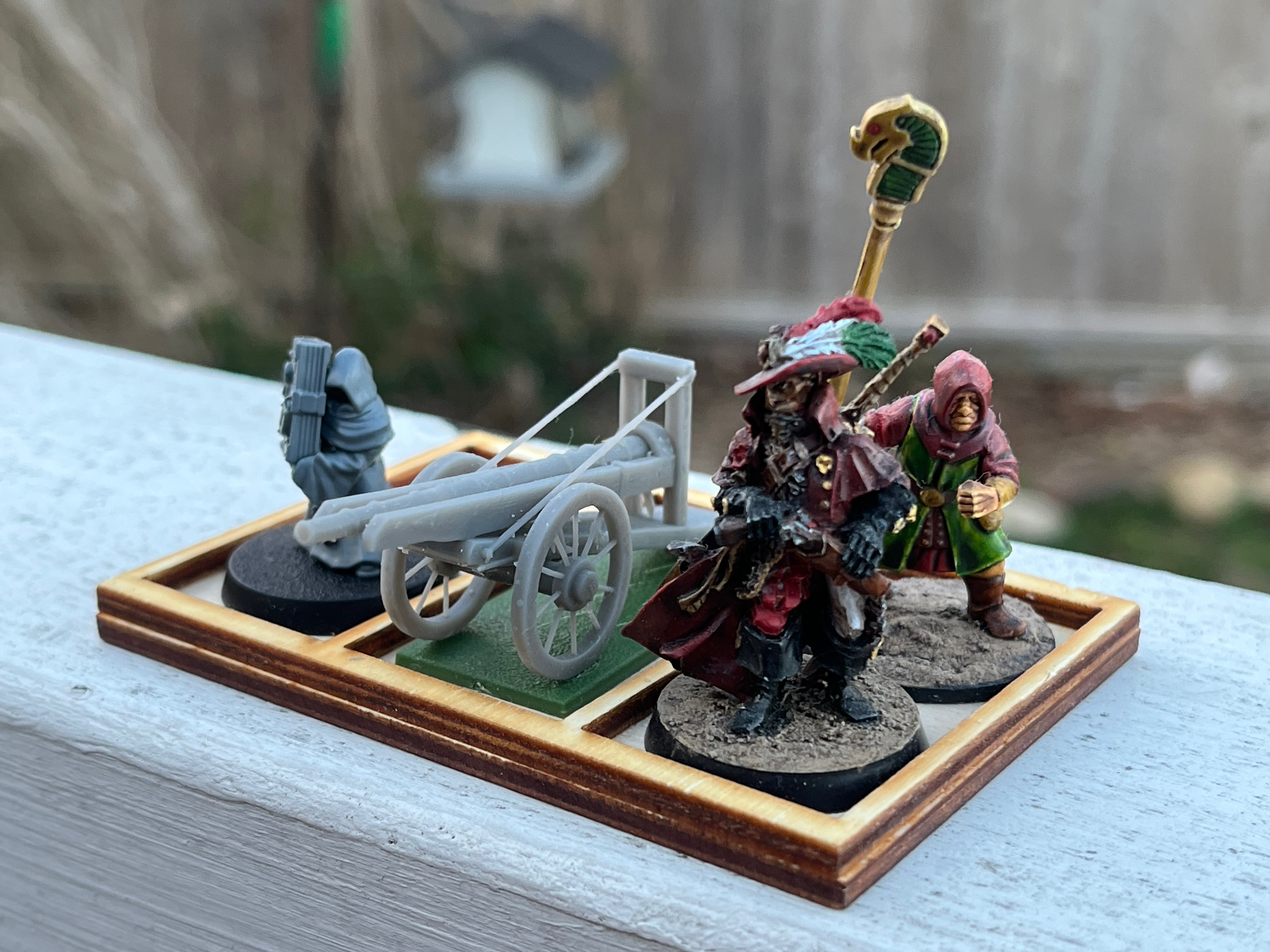 >>97275454putting together a motley crew for my cannon. A witch, a witch hunter, and a jawa. All the above steeped in the dark lore of the alchemic and explosive.