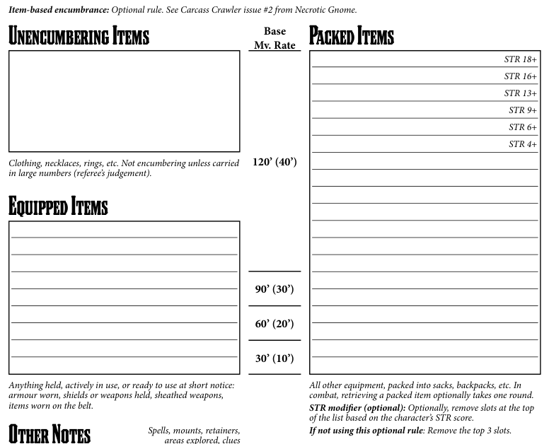 >>97392109Sounds good.Addendum: I've never used encumbrance rules before, but I think I'm going to in my newly-resurrected game, so my players have more decisions to make. Thoughts on Carcass Crawler's item encumbrance? It makes more intuitive sense to me, but I don't really like the "3 items max for an 18 str guy...