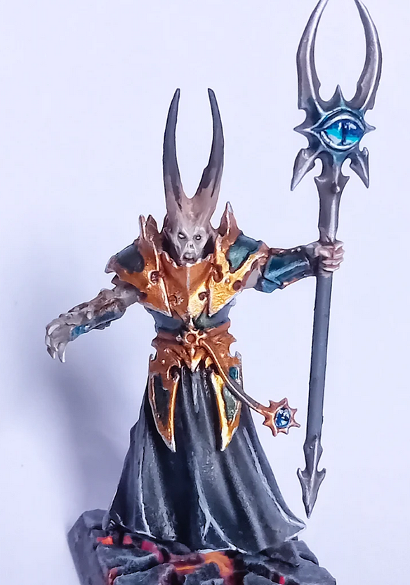painted a tzeentch chaos sorcerer. His face looks weird but since he's related to Tzeentch, I guess it's lore accurate