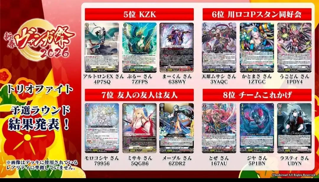 Thread 451: Fuck your parents EditionBushi-Navi EN: www.en.bushi-navi.com/Deck Log:decklog.bushiroad.com/ (JP)decklog-en.bushiroad.com/ (EN)Beginner guide, decklists and other info: pastebin.com/QxKQRhrQ (embed)Up to date fanmade PC online games, 3DS/Switch emulation and Mobile games: pastebin.com/7Fj8VqA2 (embed)Cardfight and Buddyfight matchmaking server: discord.gg/6xVFD4rWeiss/Schwarz Resources: pastebin.com/sk2iSjW1 (embed)BCS 2025/26 Info: https://en.bushiroad.com/events/bcs2526/DivineZ Parallactic Clash Ep 2: https://www.youtube.com/watch?v=1i_whZ8w2w0Divinez: Genma Awakening Arc Manga: https://x.com/cfvanguard_PR/status/2009770914012074373Comment too long. Click here to view the full text.