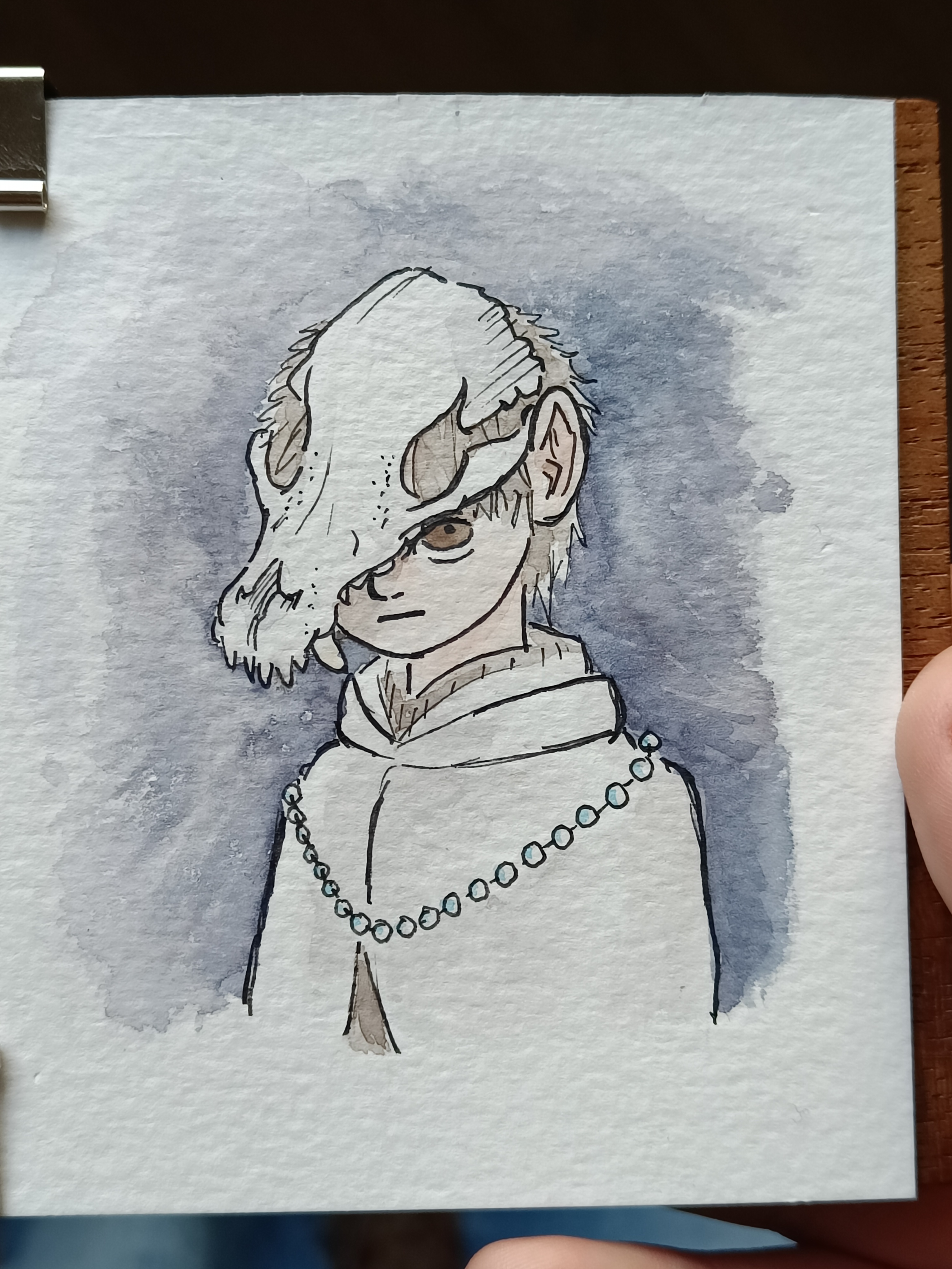 prayer to urogalan for the mornings spells, steals uncut gems to lay at shrines, sharpens shaving razor, sometimes he takes off the skull and shawl and does farm labour