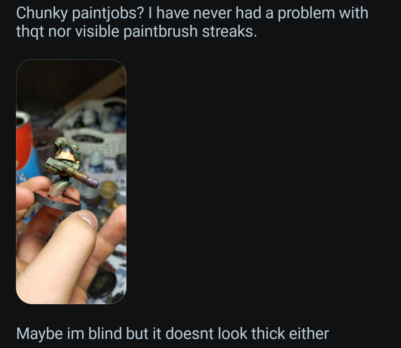 >says that thinning paint isn't needed>post a picture saying the paint looks fine>chunkiest shit ever known to menis this guy blind?