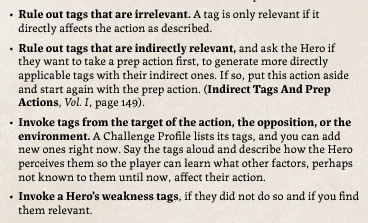>>97284535Far as I can see, that system is "the GM". But for real, my skimming didn't show a specific counter or upper limit to the tags that can apply to a situation. Just an acknowledgement that GMs should discuss a table-appropriate limit how many "broad" tags their players can apply to their characters, a reminder that sometimes tags just don't apply or won't apply, and an emphasis that for all the positive tags the players can add for more Power, weakness tags are just as abundant and situational. I'd love someone else to look over the book and point out where the stated limits are on tags, though.