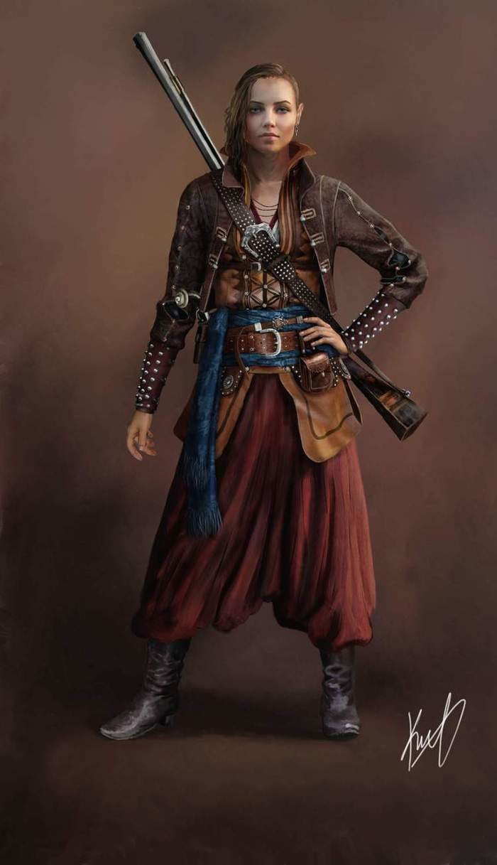 I'm looking for duelist / flintlock-wielding girls who'd fit into a Warhammer Fantasy RPG. Sadly, it's really hard to any that don't look too anime.