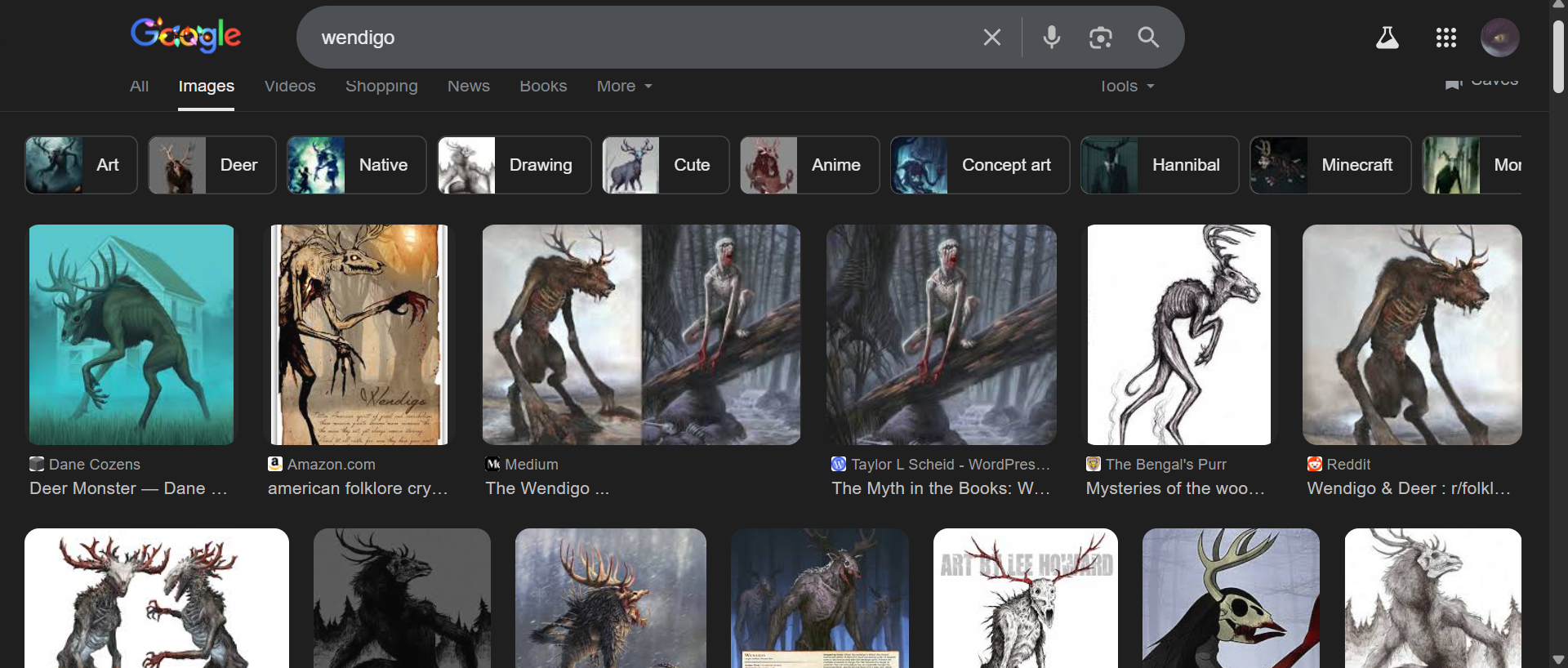 >>97208211>I don't think anons little sessionA reminder the antlered Wendigo conception that is at this point by far the most common portrayal of the creature came from a 2001 indie film that had an opening weekend box office of $1,107.It is really REALLY easy for stories to spiral from small origins.