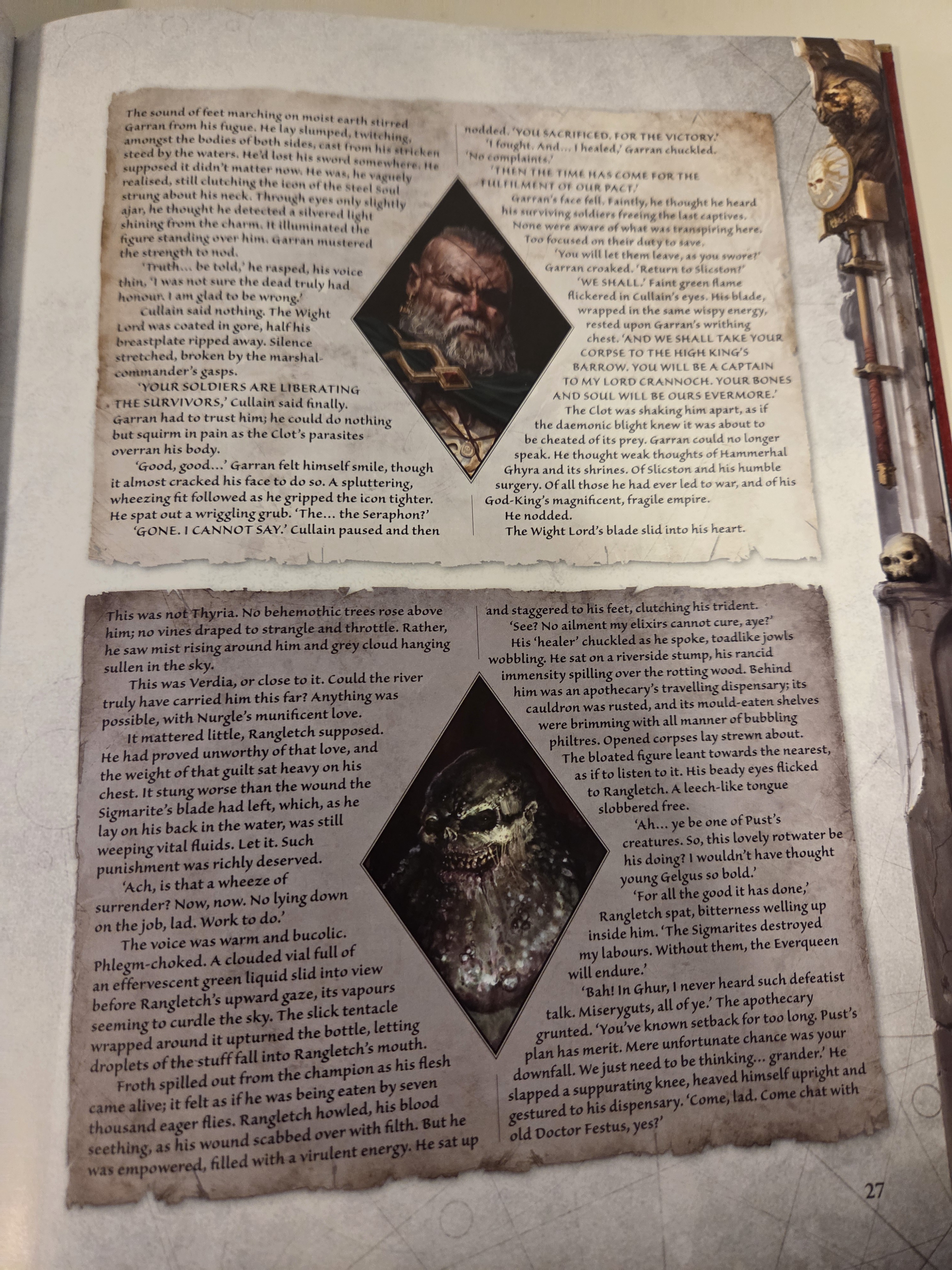 There was some Skaven POV novels that go into their level of technology. One of the details that I liked was that the average "street" (tunnel) in a Skaven settlement is completely unlit - Skaven scamper through the tunnels entirely directed by their sense of smell, and shops have rags dipped into their product hanging in front of the door, to be smelled, instead of a painted sign. Skaven enjoy having lights, but it's apparently a luxury only enjoyed by very few. That's the level of tech you should be imagining. Other fun details include the "black corn", Skavens' only crop which is grown only in Skavenblight. It's absurdly expensive and disgusting to taste, but the wealthiest compete to eat a handful as a status symbol. Or cultural civil wars where some Skaven settlements just want to live underground peacefully and steal food from humans forever, a religious heresy when the Horned Rat preaches that they must rise and control the surface world eventually. The ongoing tensions with Pestilens, a pretty obvious Nurglite faction that very nearly overthrew the council of thirteen in a civil war generations ago. The ritualized body language that they use to silently communicate, or their ability to spray musks as a way of communicating. I don't hate furrys on principle but putting a Skaven in a shower is badly missing the point of Skaven, which is both to show crushing filth and perdition and to show the total novelty of a society that's nothing like human civilization. It's similar to how gay artists draw Queek gay porn using human body language when the novels give LAVISH examples of Skaven body language that's totally inhuman. Why didn't you draw that? Lack of respect for the source material. Like if you're already gay I can understand why you wanna see Queek buttfuck Ska, sure, but don't make them all cute and smiley. They don't do that. But the straight artists are much, much worse because they're doing a rat with tits and putting her in the shower. Ugh!