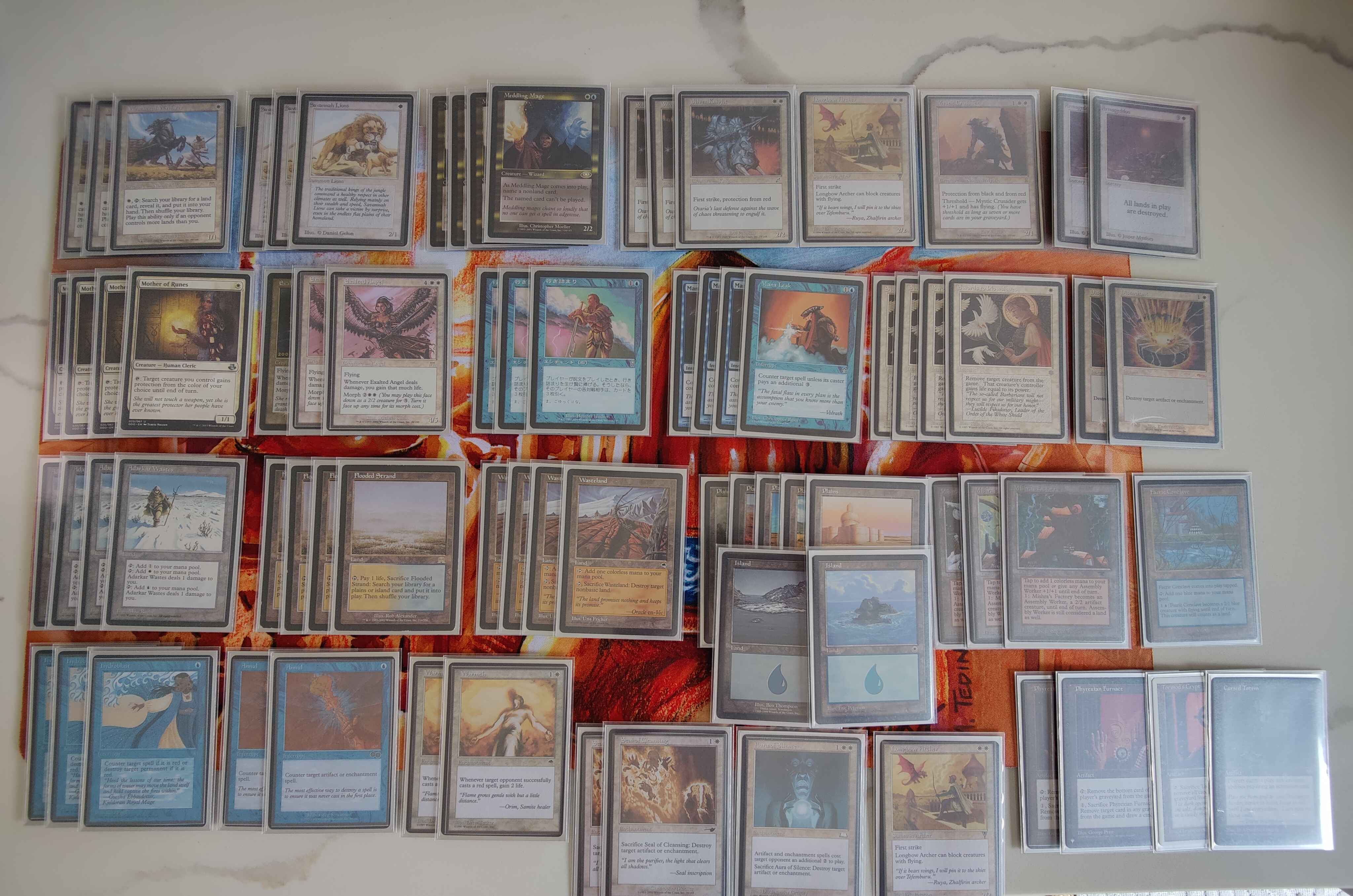 My city's first Premodern monthly ran today with 10 players. I went 2-2 with this hastily assembled UW Flippi list - I was running late hence some numbers look weird0-2 Moneyball black2-0 Flinker0-2 FEB - I misplayed because of format knowledge, naming wrong with Meddling Mage, in G1 then mulled a 7 and 6 that I probably could've kept in game 22-1 SlighMy losses were to 1st and 2nd place respectively so I scammed my way into 3rd place.