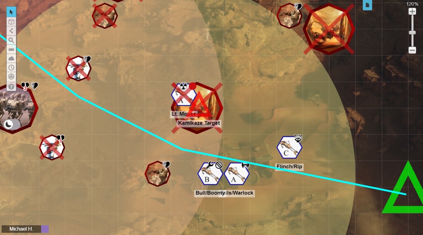 >>96756798The six members of Foresight would be given 3 speeder bikes, and sent to reconnoiter the pirate base in advance of the main landing force. But doing so would mean breaching the defense perimeter by themselves, and drawing fire from every droid along the way. Immediately, the team set about scrounging.One of Foresight's 3 Shoretrooper members, the scout-sniper "Warlock," stole a mouse droid. Unlucky TIE pilot "Flinch" and ladder-climbing Stormtrooper "Bull," began calling in favors from other units aboard the Star Destroyer, acquiring an extra bike and a supply of explosives. Flinch reprogrammed "Lieutenant Mouse" and wired the little droid into the fourth bike, to carry the explosives for a kamikaze attack. Meanwhile, tech-minded Shoretrooper "Boomy" repaired an old CIS missile beacon he'd collected on the previous mission, so that heavy weapon Shoretrooper "Rip" could fire it from his rocket launcher. Lastly, the team's Twi'lek medic/mad scientist "Tails" dosed her boys up with an unhealthy amount of agility-boosting stims. Very important, since only Flinch had speeder training!Foresight came screaming out of the dropship. Rip lobbed the beacon into a dug-in platoon of B-1s, which caused the first volley from a Hailfire droid to tear its fellow bots apart. Warlock shot a STAP out of the air, and Boomy tossed grenades at nearby droids. Flinch, Bull, and Tails did their best to evade incoming fire, diving through the storm of blaster bolts with near misses and grazing hits that scorched their plastoid armor or jostled their bikes. Somehow Lt. Mouse managed to avoid taking any hits at all. It seemed like Flinch had accidentally uplifted the little droid, turning it into an impressive pilot. Triumph and Advantages on the programming roll, plus lucky rolls during the battle. We're using FFG's system. The kamikaze droid weaved through the chaos of battle, closing in on the designated Hailfire...
