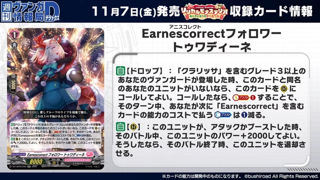 Thread 447: What the fucked happened to the thread EditionBushi-Navi EN: www.en.bushi-navi.com/Deck Log:decklog.bushiroad.com/ (JP)decklog-en.bushiroad.com/ (EN)Beginner guide, decklists and other info: pastebin.com/QxKQRhrQUp to date fanmade PC online games, 3DS/Switch emulation and Mobile games: pastebin.com/7Fj8VqA2Cardfight and Buddyfight matchmaking server: discord.gg/6xVFD4rWeiss/Schwarz Resources: pastebin.com/sk2iSjW1BCS 2025/26 Info: https://en.bushiroad.com/events/bcs2526/DivineZ DELUXE Finals Ep 12: https://www.youtube.com/watch?v=o0mj1pSvrusDivineZ Parallactic Clash Teaser: https://x.com/cfvanguard_PR/status/1974256672383381953Comment too long. Click here to view the full text.