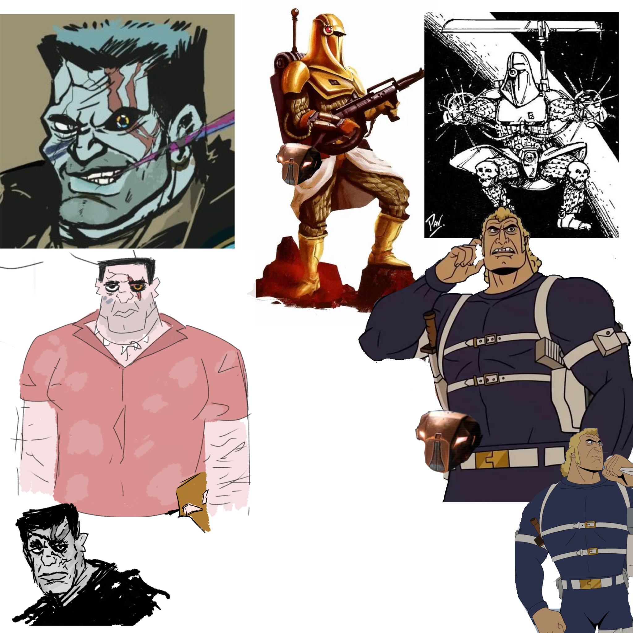 Got this guy that’s like a star wars version of Brock Sampson. Big mercenary brawler type, it’d be cool to see him with some body armor like the top right of pic related, also dude wears a droid head from KOTOR like a belt not really necessary to include though. It would be cool to have that big dude in a tac suit kind of vibe. Anyway Not really picky about the design or any big changes, feel free to do whatever’s fun just would like to see what someone can do with my guy.