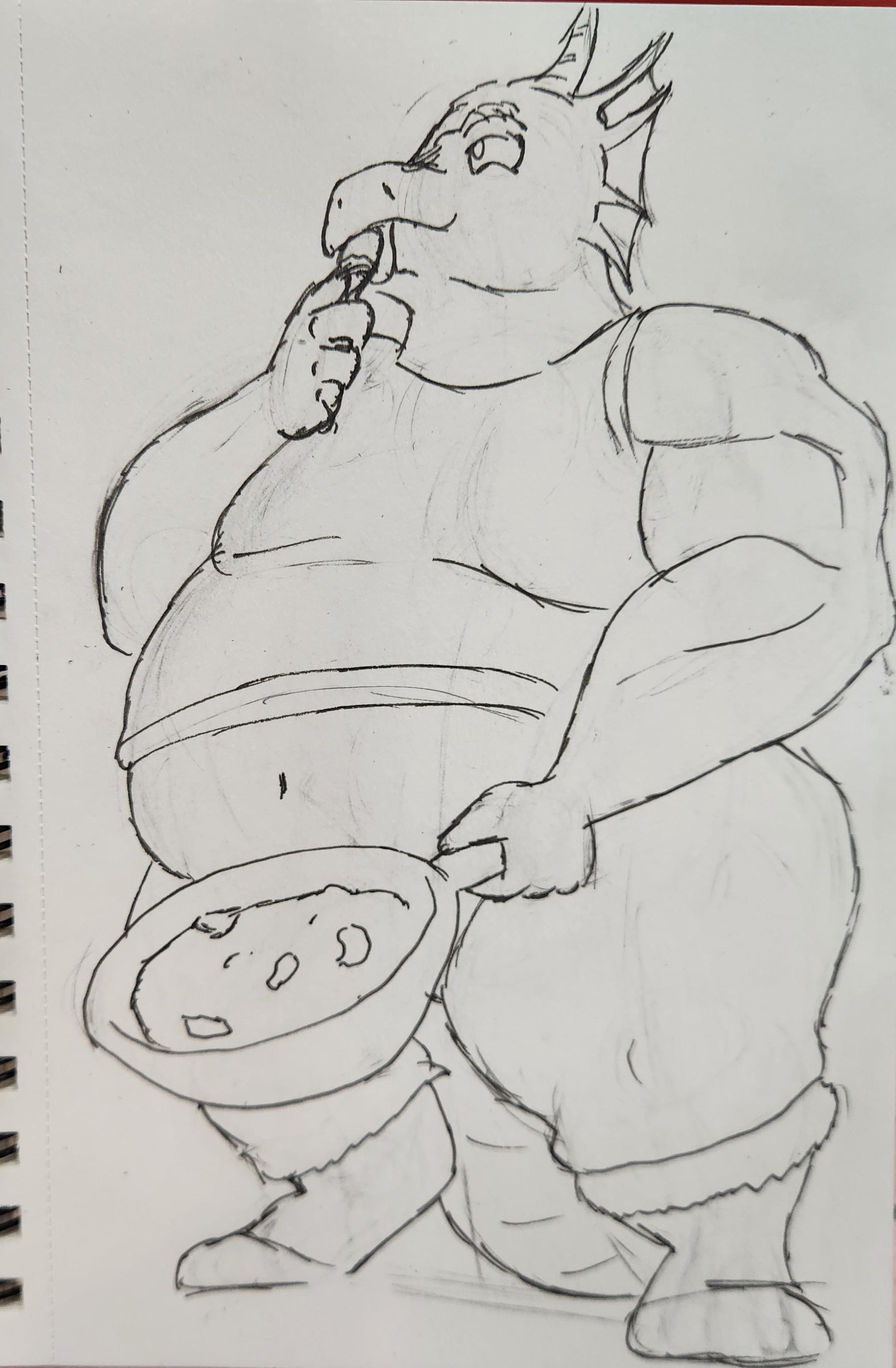 >>96769932>>96778015I have made a couple of attempts, but I am rather concerned with how its coming out because (1) I forgot you already have a clothing outfit set up, and (2) I made him too....furry (scaley) bara like.I got cocky when I was on a marker drawing spree as of late.