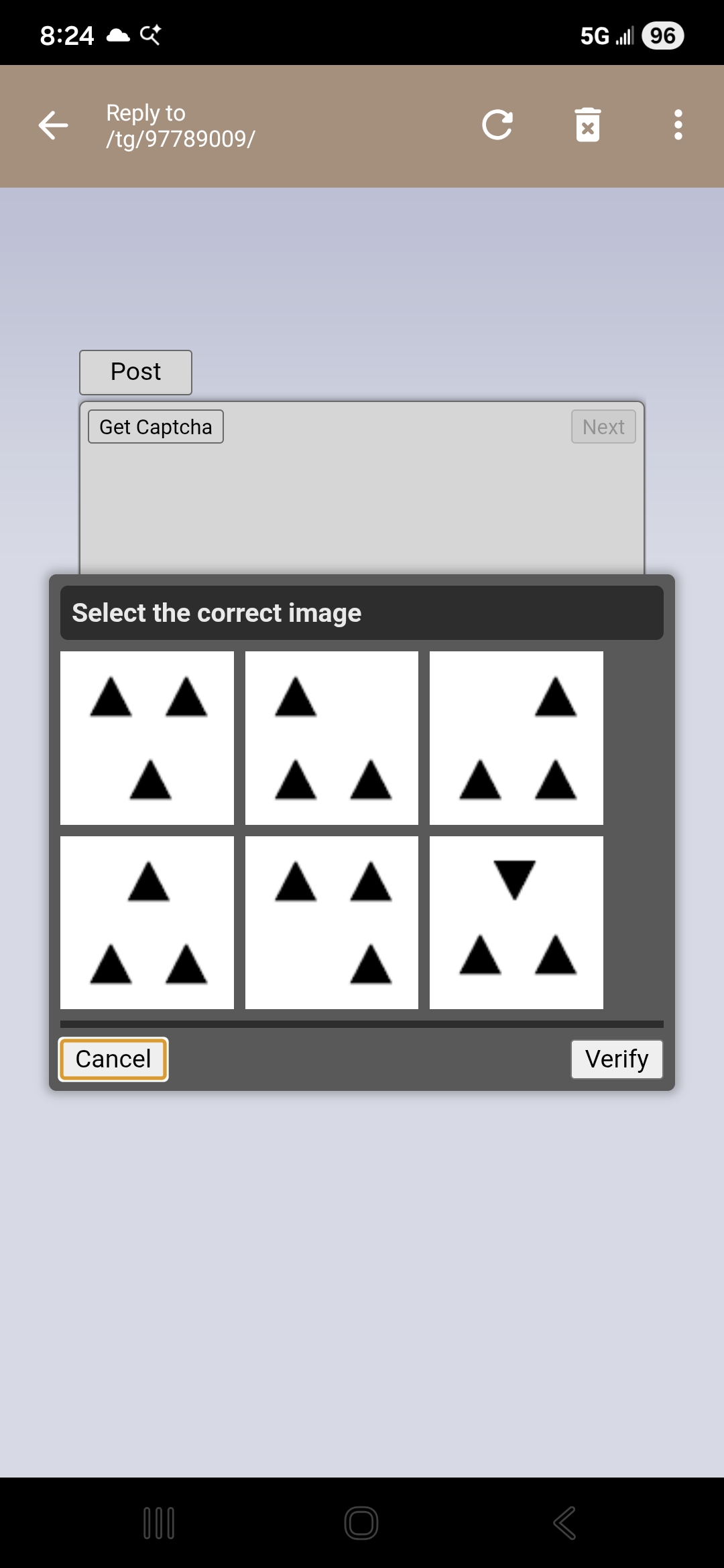 >>97817310I've just always gotten the pick 1 of 3 captcha since they changed it.