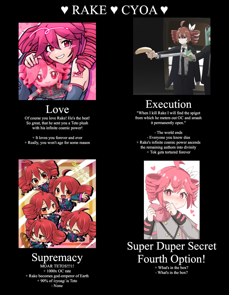 Archives & Other Resources: https://rentry.co/cyoagAllsync: https://cyoa.allsync.com/s/owWor64yLTngDk3Previous thread: >>97798094