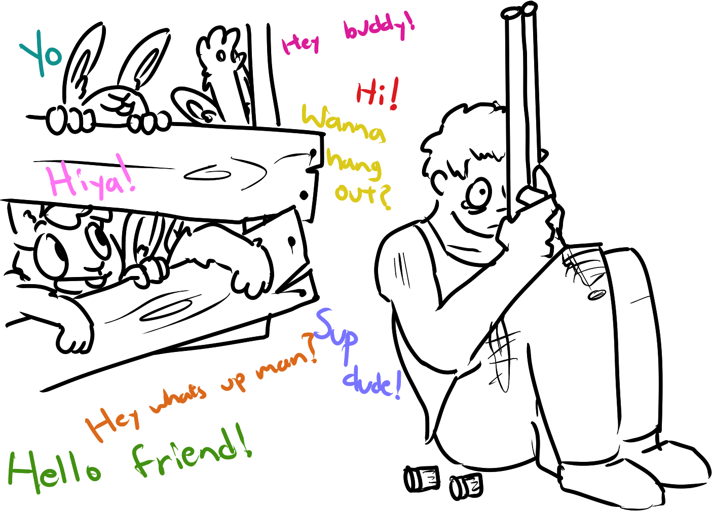 Reminds me of those old /tg/ threads where /tg/ invented a game/campaign scenario where a wizard made a spell/disease that caused people to turn into short, perpetually happy rabbit folk. The spell/disease spread by hugs.