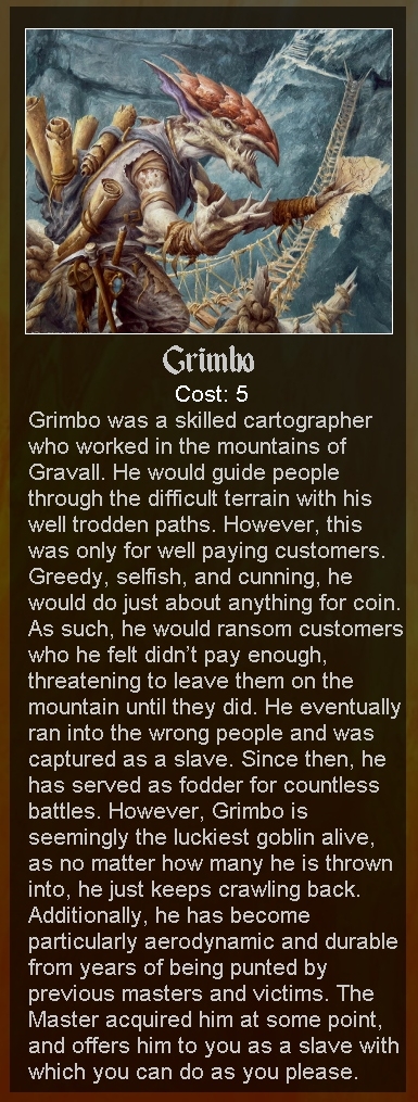 >>97831667Agreed. At the least the entropist had Perish Song and MirrorSeeker's Necromancer CYOA with Catharsis by music. And you know what else a lot of these CYOAs lack? An entertaining minion for you to kick around and bully.