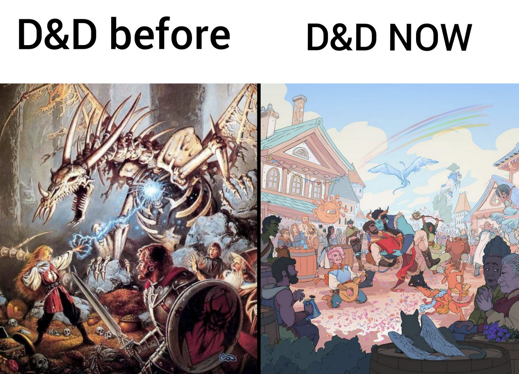 Anyone got any better than this D&D now vs then comparison pics, especially for art style?Seeing the new MTG set look so incredibly gay and full of mediocre modern digital fantasy art is quite sad.