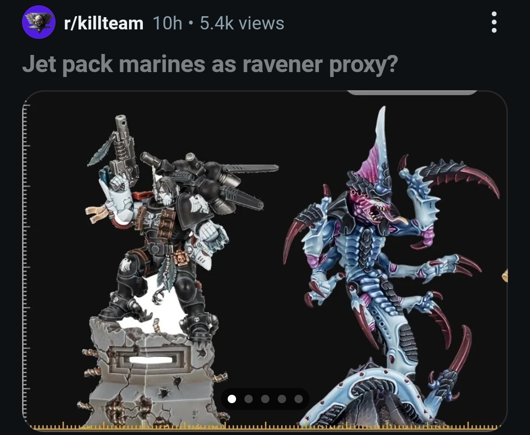 >>97710627>is Kill Teams currently a good, competitive gameNo. The only advantage of KT over other skirmish games is piggybacking on 40k's popularity which gives you a higher chance of finding player at your LGS.Kill Team is not a good game and it's definitely NOT a competitive game. If you want to know if a game is well-designed and suited for competitive gaming perform a simple test - check what Line-of-Sight rules are being used in said game. If a game uses 2D LoS rules it is clear that authors were aiming for the most clear way of determining the LoS to avoid any kind of discussion at the table. If a game is using True LoS and you have to fucking squat to see if your mini sees (lmao) opponent's mini and then argue about this with your opp (which is quite common in a cut-throat highly-competitive environment) you know the authors are lazy fucks. KT has one of the most convoluted and pointless cover rules I have ever seen in my life and I constantly see people following a fucking flow-chart to know if they determine it correctly.When you play with friends it shouldn't matter of course but unlike some people claim, the competitive scene is very proxy-unfriendly since because of the TLoS the mini's shape and size DO matter.