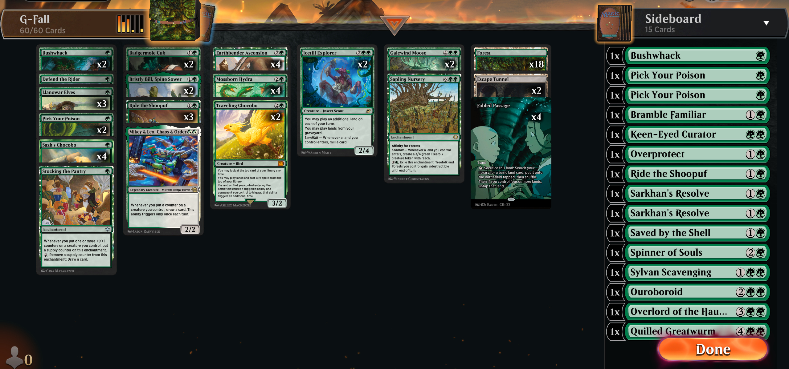>>97840833Current version. Made for bo3, but sidedeck is always work in progress. 2x Ouroborid instead of Moose is obviously better. It's just more fun to throw green flash chonker when people least expect it.