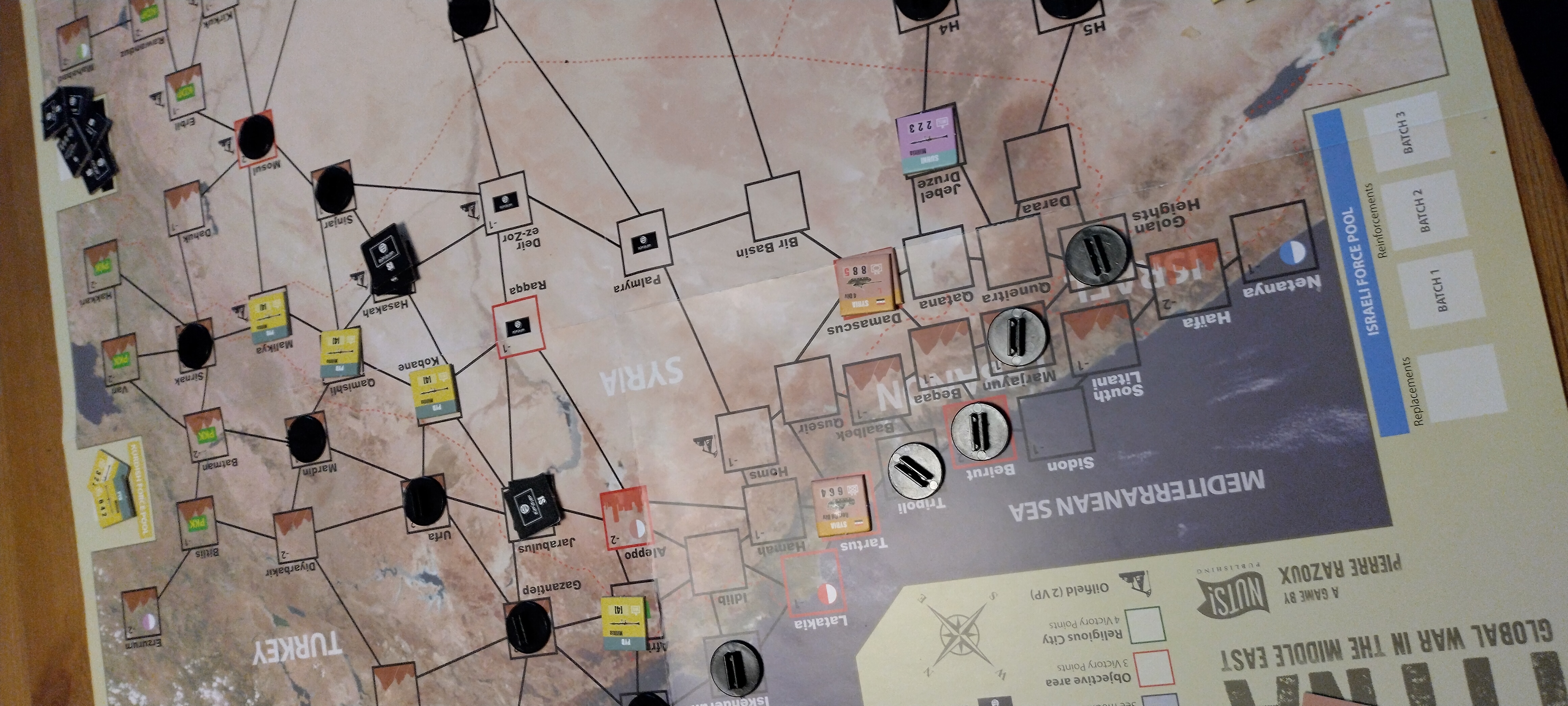 I might have army tokens that move about the board, but actual attacking cities to conquer them will be an Illuminati-esque mechanic where you roll 2d6 and "spend" soldiers like money to influence your roll (and it will be against a fairly hard number, like 10 base, or +4 difficult for 14 if they spend stone on walls for their city), and so far the army has just been an abstract currency you spend to attack a city, and have to pay more resources in Food depending on distance between your nearest city and the city you're trying to conquer.