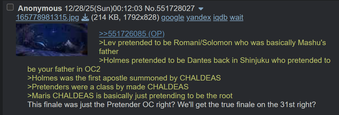 >>97252519>"ok, that's over, go back to being a wagie now."Not even that, but Japan loves it when everything you did was ultimately meaningless in the end and changed nothing. The status quo resets to usual. All endings must end in nothing happening. Nothing ever happens or matters. The entire story can be about fighting gods and the entire universe being deleted but by the end of it you'll be back in modern day Tokyo with no one knowing anything happened or giving a shit because none of it really mattered. Except you remember it because your MC lost something because Japan always twists the knife one final time to fuck you over.>>97252525>I thought gachas don't have endingsThere's a main story that constantly got updates and new main story sequences and parts as the game went on for 10 years now, but the main story is finally complete. The gacha part is still there and I think it's still going to continue but just without the main plot. So it's now a "complete" game experience and what'll cycle through now is monthly gacha repeats of prior swimsuit events and such.>>97252519Also, I found someone mentioning the CYOA in the FGO thread, see pic related. kek