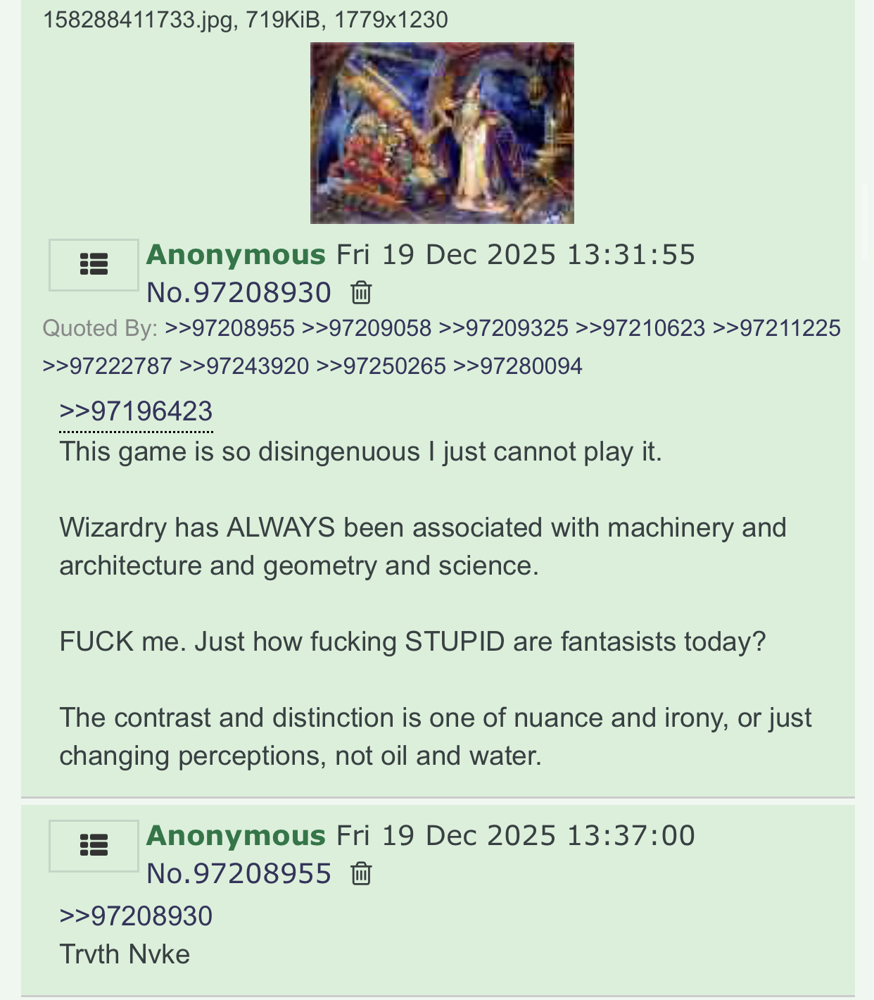 >>97309028>likely got reported by the ‘nooo magic is not the same nooo’ guyLOL, like I care so much about some derailed thread on /tg/ to even think of reporting some anonStill, I'm really flattered to read how I live rent free in your head, anon.