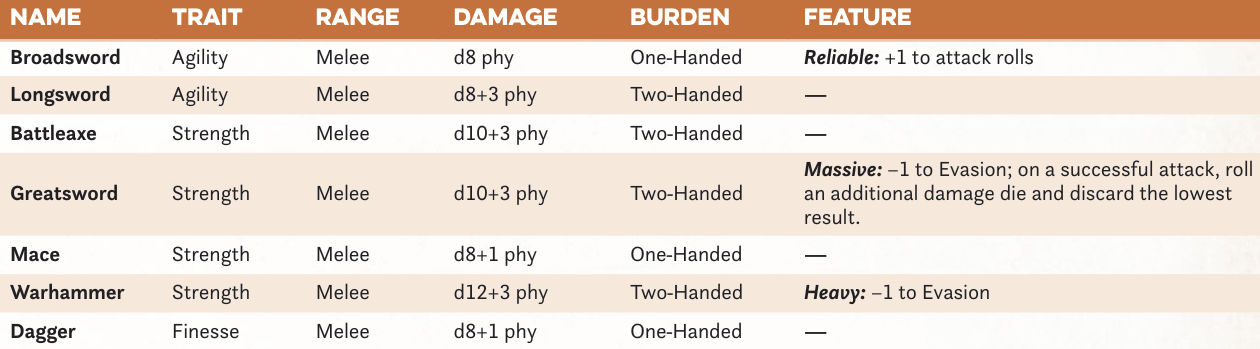 >>97376611Anon, why don't you try GURPS? It actually tries to represent how weapons work. I'll give an example.A dagger deals thr -1 impaling damage, meaning one less than your default Thrusting profile. A broadsword deals either sw+1 cutting or thr+1 impaling damage. Both weapons scale with your strength, though the Swinging profile usually gets a lot more out of your physical abilities. The different damage types also represent the different natures of how you use them; an impaling weapon usually has low base damage, but deals 2x damage after calculating armor, and can target vulnerable areas like the Vitals which allow it to instantly kill a man with a good strike, while cutting only gets a 1.5x modifier. While somebody will say this is too complicated for their smooth fucking brain to comprehend, its what allows weapons to actually feel meaningfully different rather than like a bunch of identical paddles.