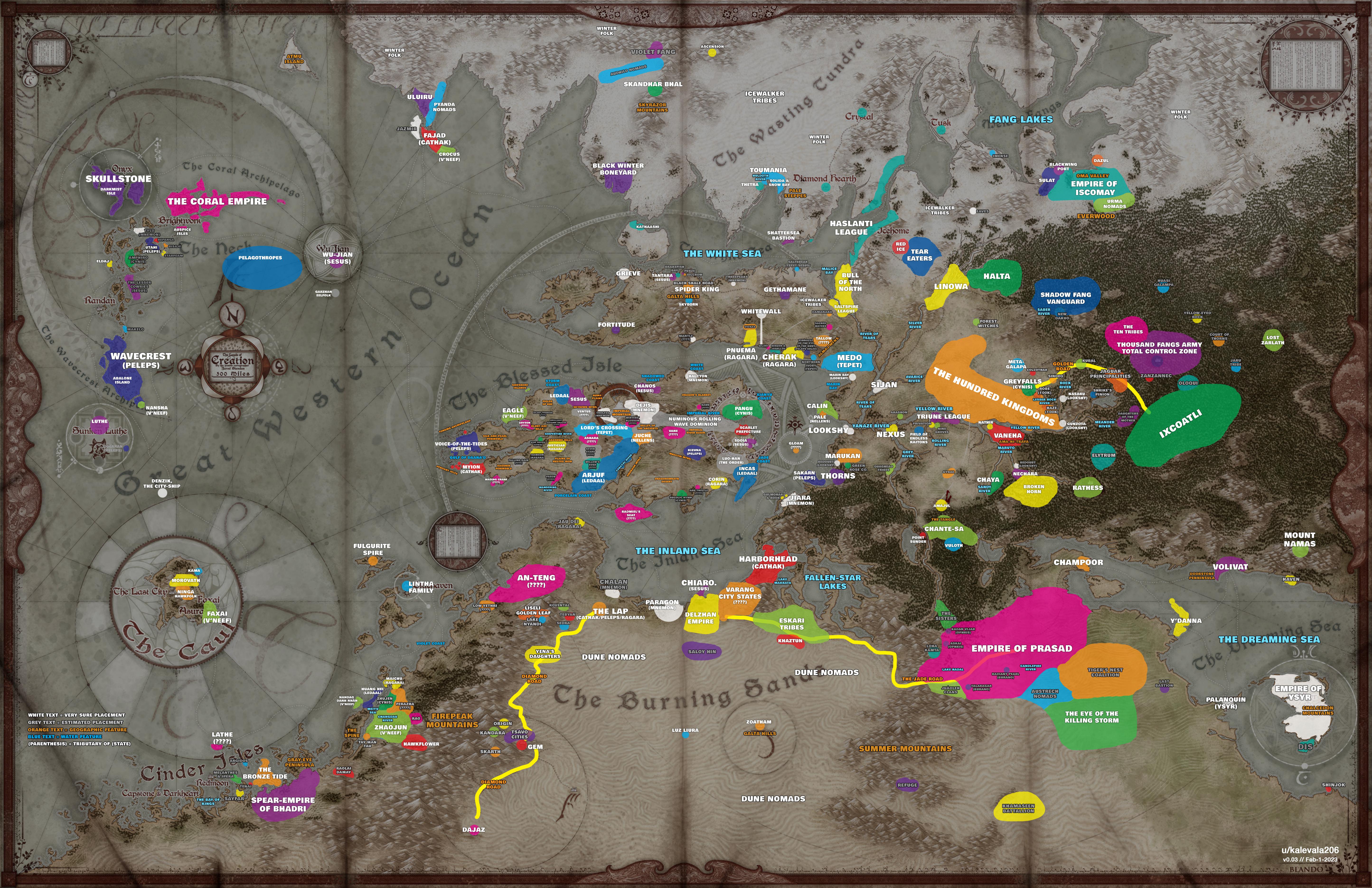 >>97376630Roads also cause a gameplay problem because travel on them is fast and not subject to getting lost, which means that they naturally attract pathing and keep parties from striking out into the wilderness in more interesting ways. As such, they should be kept to a minimum.Looking at your map I get the impression you're already basically doing this, but what tends to work best for D&D is if the setting is a post-catastrophic period when the land is severely depopulated and former thriving settlements have fallen to ruin, and/or were inhabited by inimical humanoids the whole time, so that the roads are gone and old castles, abbeys and even cities rich in artifacts lie abadoned and ripe for the plucking if they can only be found.Considering all this, Anon's suggestion that the only roads leading through most of the map be very occasional Roman or not!Roman roads that are so robust they survive centuries of neglect and are almost considered magical artifacts by the present population is very sound. In your case, for example, if you look up where Ermine Street and Watling Street ran, those would probably be good choices for where such roads might be drawn (and you could efface the roads during parts of their former extent, as well, forcing PCs to explore to find the next intact section and pick the route back up).