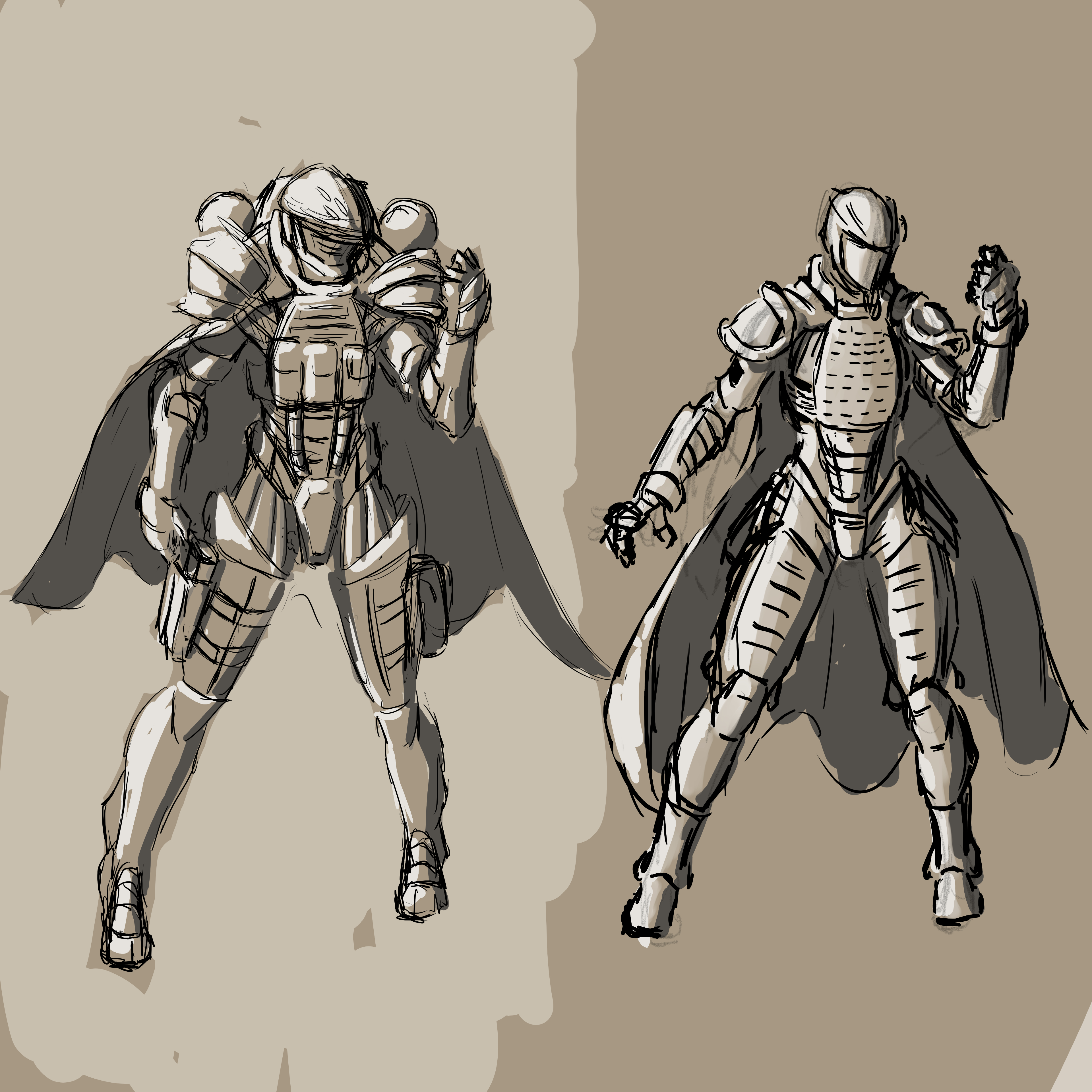 >>97215274This one is tossing stuff at the wall to see what sticks, THis might bear very little resemblance to the final design but i will need you to answer a fiew questions to the best of your abilityes . BTW i apologise if this is a bit frustrating. or if you did not get any closer to getting the design you want. alrighty, the previous one was too bulky, i tried something else as a rough sketch, left is inspired by all you need is kill armor, with some medieval stuff like frogmouth with extra proportional libertyes and tacticool vest , right is closer to vanquish. sill far off i did not manage to fully capture its feel while qwiksketching .. would you like more vanquish ? or is this sufficient.lorewise?so spheres are basically just the knowledge of a mage in a certain aspect and quintescence ( im still trying to figure that out) Anyways which aspect of the 3 do you like, i can add chainmail pieces, steal the proportions, combine different chestpieces, laser cutouts , molley, THICC thighs, normal thisghs, artificial musculature sapi thigh plates, ecc--Comment too long. Click here to view the full text.