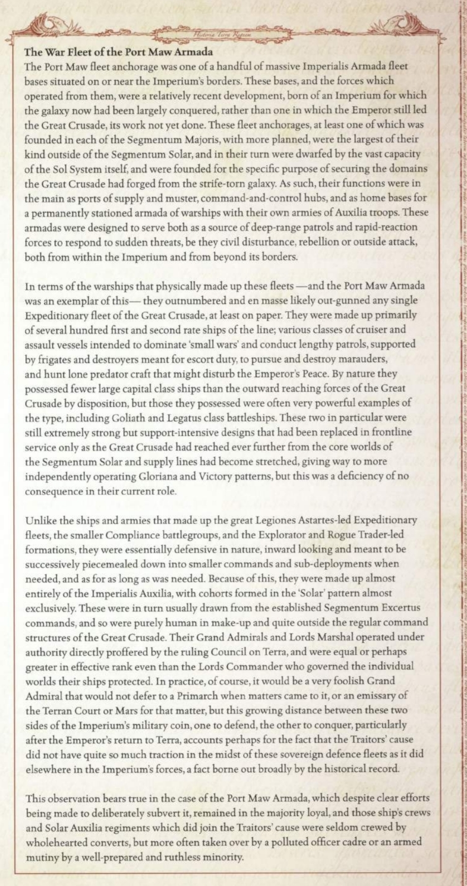 >tqHorus was wrong and rebelled for wrong reasons but the Emperor wasn't entirely right either. The Imperium was made for humanity, not posthumans. The legions were made to protect mankind, not to rule it.There is an interesting point brought up in some of the Black Books that the Imperium was building up new armies and fleets of mortal humans and led by mortals, not for sheer conquest but to hold and defend what the Imperium had. These new armies were raised by and ultimately answered to the Council of Terra. By and large these new armies also remained loyal to the Imperium rather than rebelling alongside the Warmaster.Perhaps there was a possibility, one that I have never seen addressed much myself, that had Horus's rebellion happened even just a few decades later then it may not have even reached Terra as by then the majority of the Imperium's fleets, which even in the Expeditionary fleets were crewed mostly by mortals, and armies would have been restructured and under the Council of Terra rather than the Warmaster directly. I don't know how much these particular details played into the Warmaster's plans, but perhaps he was aware that not only was the Council of Terra growing in strength politically but militarily as well.Pic related is from Book 4