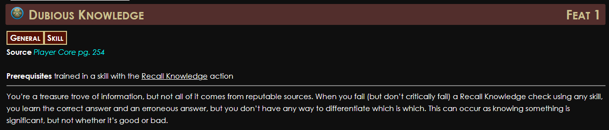 I am working on a new character (elf ranger that grew up alone from extremely young age in the woods so they are somewhat feral akin to a zerker)and was looking at the Hermit background. Have you ever used the dubious knowledge skill before? It seems like it could be fun but also seems like a straight up negative feat.