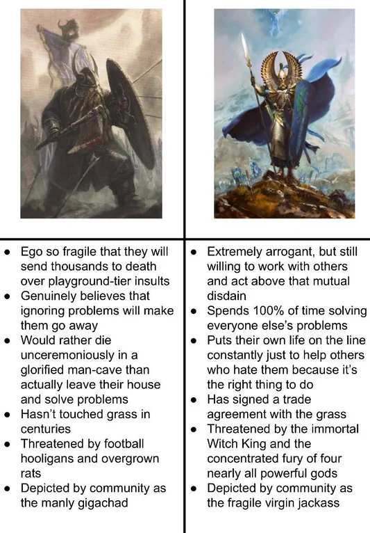 >>96821370I think one of their main problems is, that, unlike vampire counts, they cant/dont raise new soldiers from their dead enemies.
