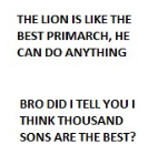 >Destroys all human religions thus ensuring humanity would be left with no benevolent warp entities and empowering the Chaos gods>Destroys countless human civilizations who were thriving on their own and wipes out their tech and resources>Destroys countless allied xenos thus ensuring that humanity has nobody left but enemies surrounding them>Creates a government entirely centered around him and a handful of superhumans and then loses half of them to Chaos>Massively increases the military power of Chaos by gifting them 9 legions of space marinesHow the hell does anyone think you need to side with this retard or else you're a traitor to humanity?